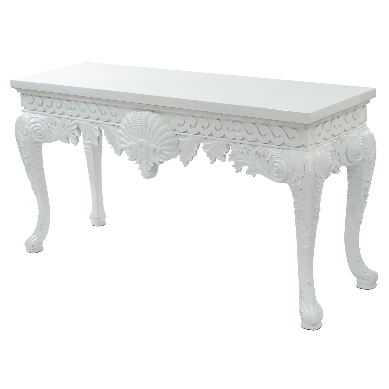 Studio Made Console in White Lacquer with Shell Motif 1970s - SOLD