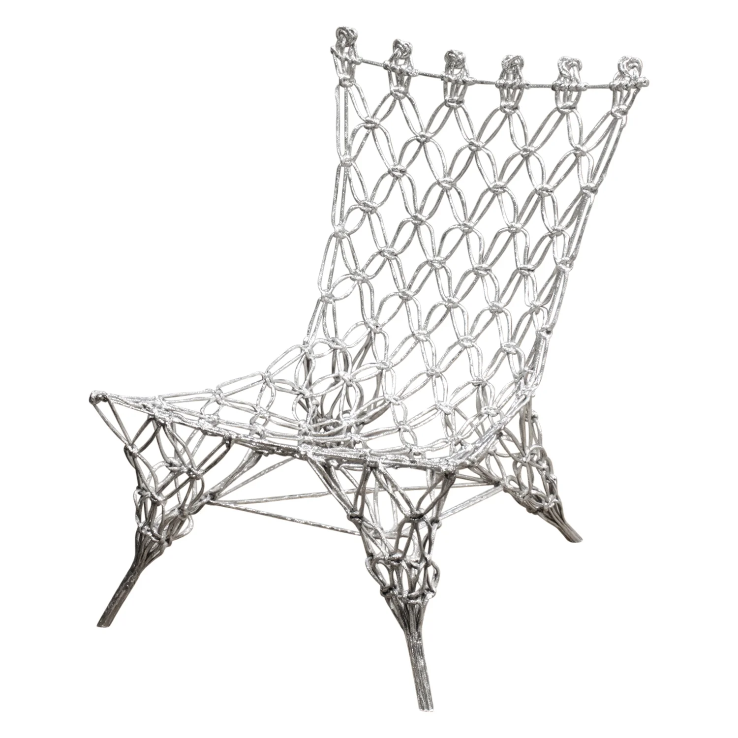Knotted rope chair designed by Marcel Wanders for Cappellini Italy, in a limited edition in chrome epoxy, 1996