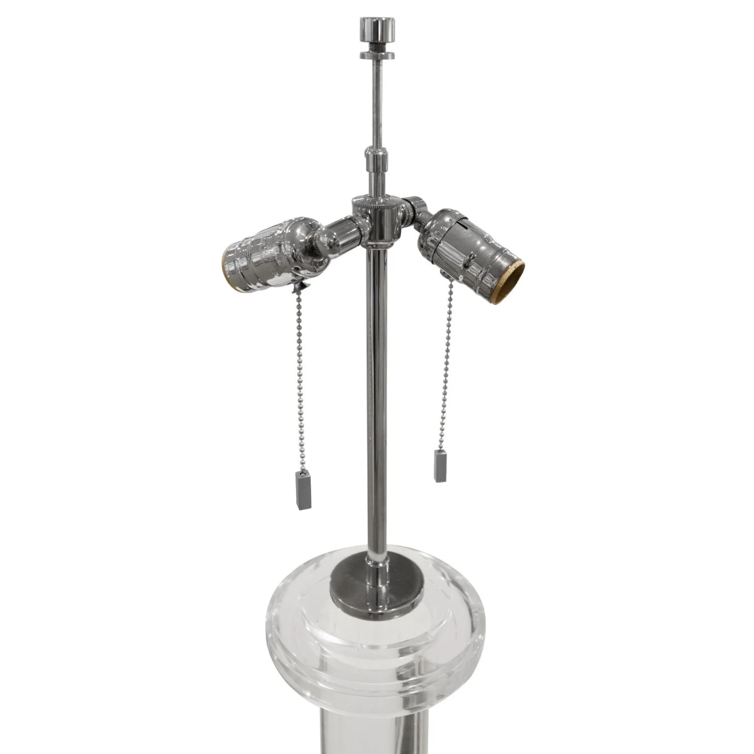 Condition: Excellent - Small marks on the bottom of Lucite base. Metal has been polished and lacquered. Newly rewired with new foot switch and sockets.