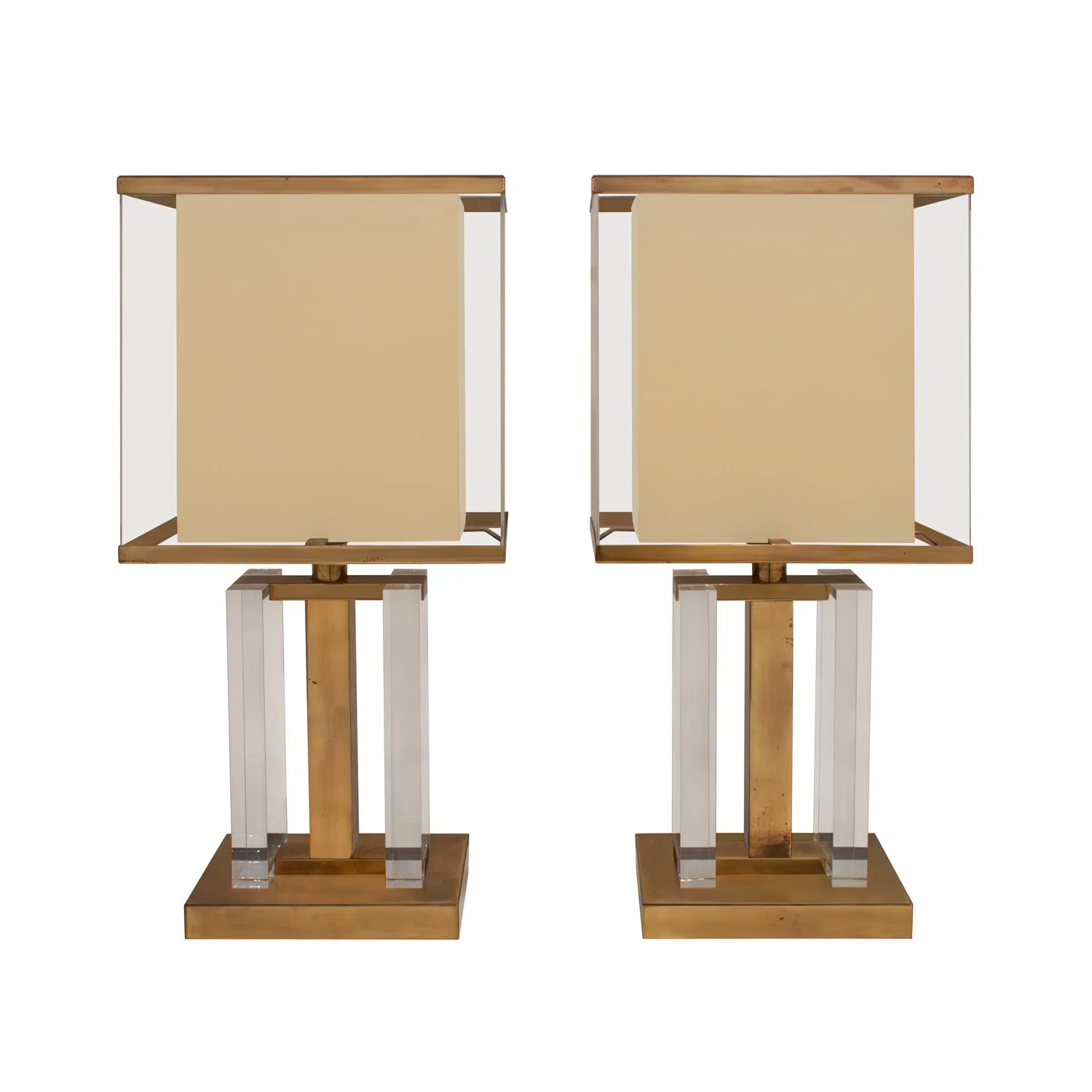 Romeo Rega Pair of Architectural Table Lamps in Lucite and Brass 1970s - SOLD