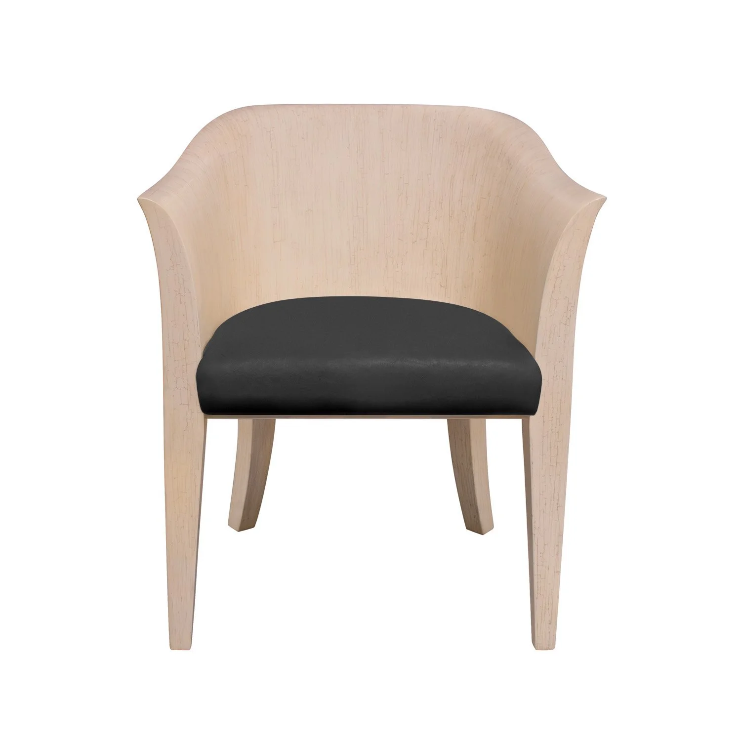 Rare and very chic “Tulip Chair” in hand-applied antiqued ivory bone lacquer with leather seat by Karl Springer, American 1980’s. This chair is a superb example of Springer’s fine craftsmanship. Seat newly upholstered in black leather by Lobel Modern.