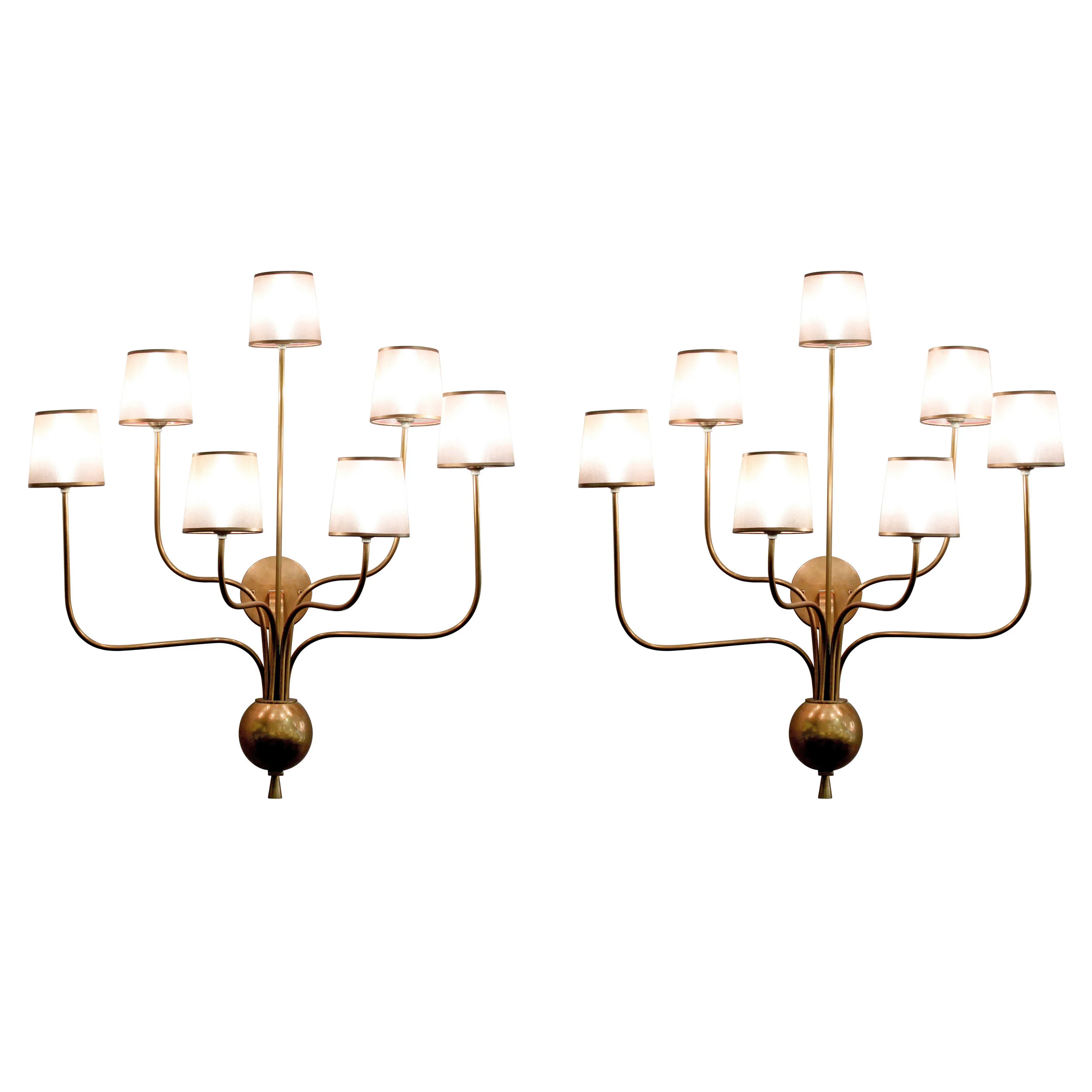 Pair of exceptional and beautifully crafted torcheres in gunmetal, brass and lucite by Karl Springer, American 1980's. This is one of Karl Springer’s most beautiful torchere designs. The combination of superb materials and fine craftsmanship make these special.