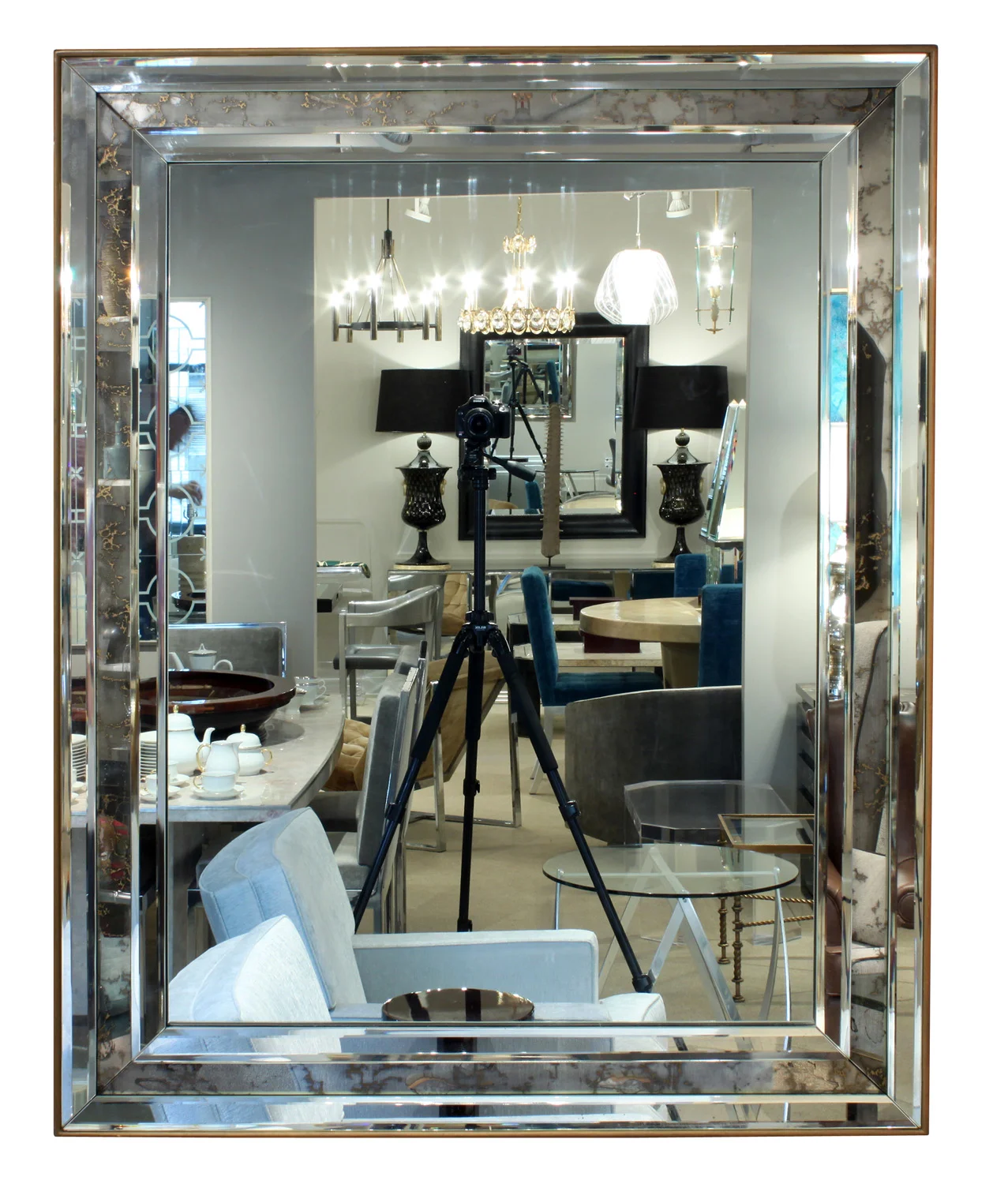 Large wall-hanging mirror with frame in lacquered goatskin by Karl Springer, American 1988.  This is a wonderful example of Springer's designs.
