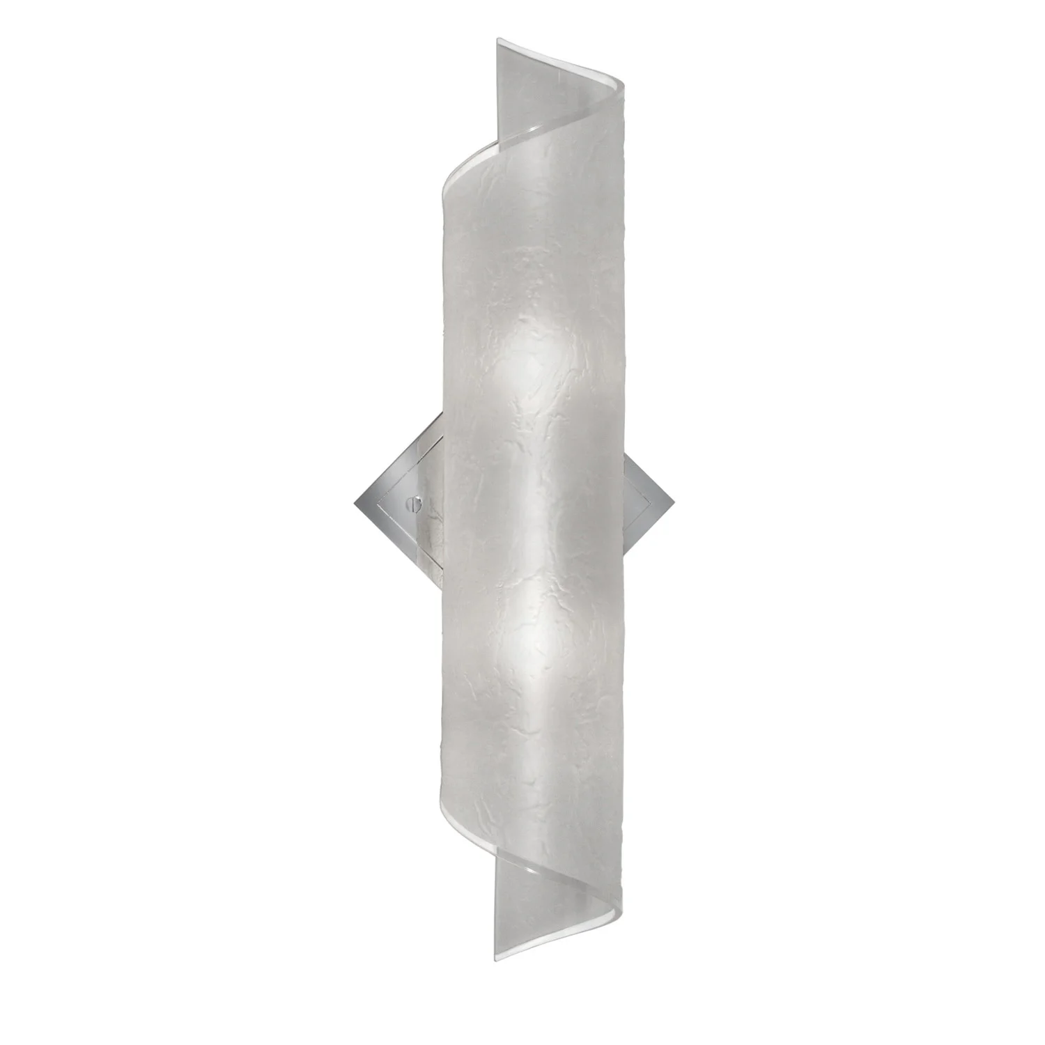 Sand-blasted textured glass scroll sconce by Karl Springer, American 1980's. Nickel hardware and etched back plate by Lobel Modern.